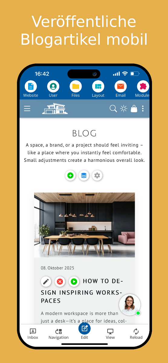 צור את האתר, החנות המקוונת או הבלוג שלך בקלות רבה – ישירות באפליקציה לסמארטפון ולטאבלט. הורד את האפליקציה מחנות האפליקציות וניסיון אותה במשך 10 ימים בחינם.